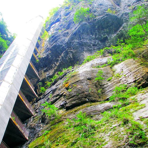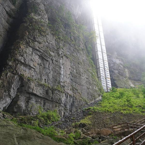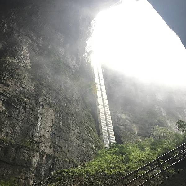 走过这个曲曲折折的天然连廊山洞后,就能直接走到观光电梯门前,门票含电梯费,我也就出溜下去了。