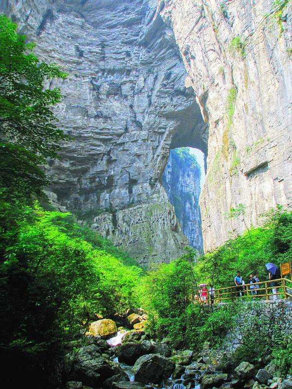 金骆驼 美丽的天坑,值得你一来膜拜,来这感叹一下大自然的神奇,领略一下人的渺小。要到达出口才会有小吃店武隆天生三桥景点,一个位于重庆郊区的著名景点,《满城尽带黄金甲》和《变形金刚4》的取景和拍照的景区。来到重庆,一定要到武隆看看这大自然的鬼斧神工,看看这独特的喀斯特地貌。搭乘