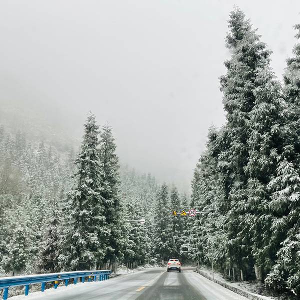 九点多开始出发前往大草原,建议还是早点出发不然会很堵,道路会结冰有些车辆打滑了,停在那里导致后面的车一路停停走走堵塞,我还看到开跑车上山的没安装防滑链😂……