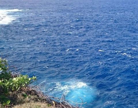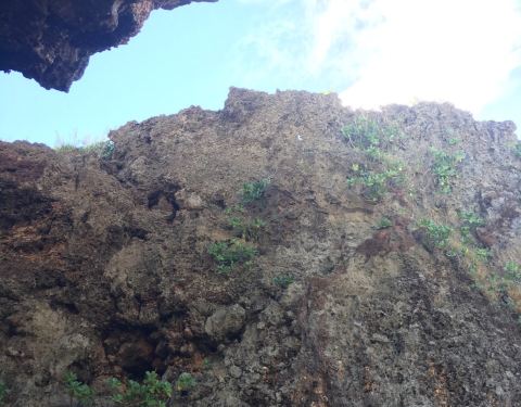 很多青苔,有喷洞。海浪很大,鳄鱼头的底部可以走进去。