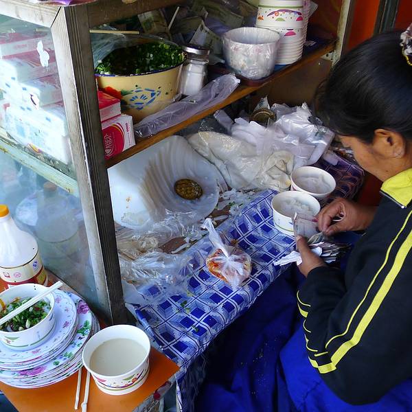 酥油,糌粑,奶渣,风干肉 炊具,香料,日用,小商品 天珠,松石,蜜蜡,红珊瑚味道较淡,口感酥脆,剥完壳再剥皮,很苦很苦的一层皮香蕉片酸奶,以为香蕉片可缓冲酸味,结果半碗酸奶还是加了半碗白糖,对面小伙伴的冰淇淋酸奶味道好一些还可以微信支付,墙上贴满了留言条和照片热闹,人多,藏民居多 甜茶可按磅或按杯卖,七毛钱 / 杯,零钱直接放桌上,添完即刻找零