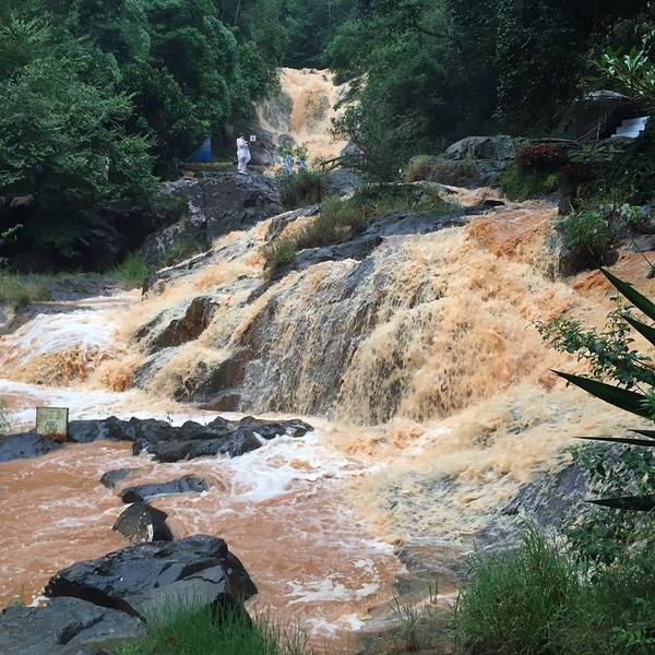 轨道车挺刺激的,手控可以调节速度,不一会儿就到瀑布了。因为刚才下了暴雨,瀑布水量暴涨,山上的泥土都被雨水冲了下来,所以整个瀑布看着就是黄黄的。我几乎是调头就走!