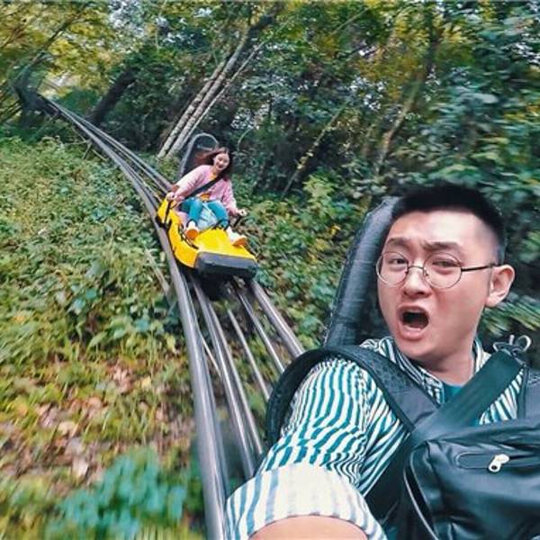 这个索道我称之为手刹过山车,还挺好玩的,一下子回到了童年......有些地方坡度还是很陡,完全加速下滑是有失重感的