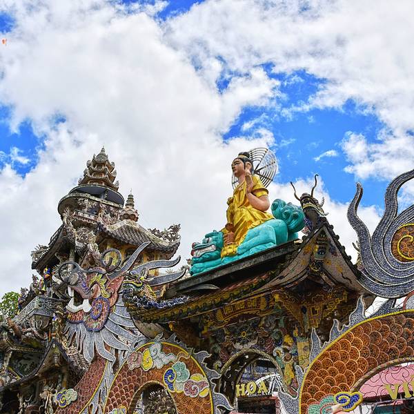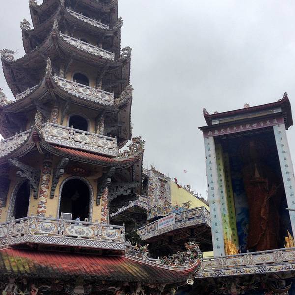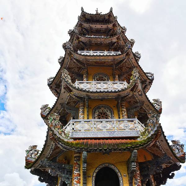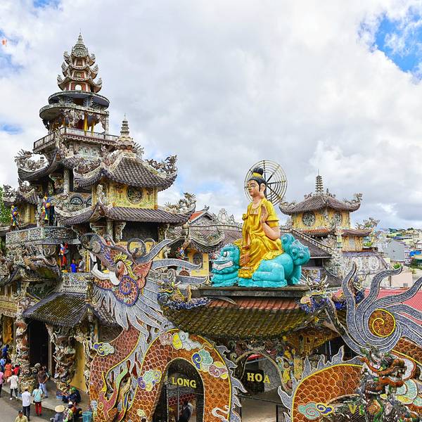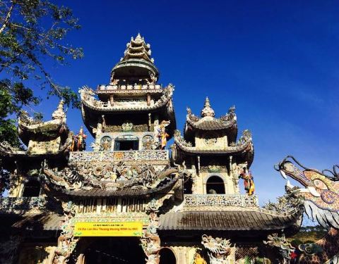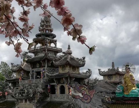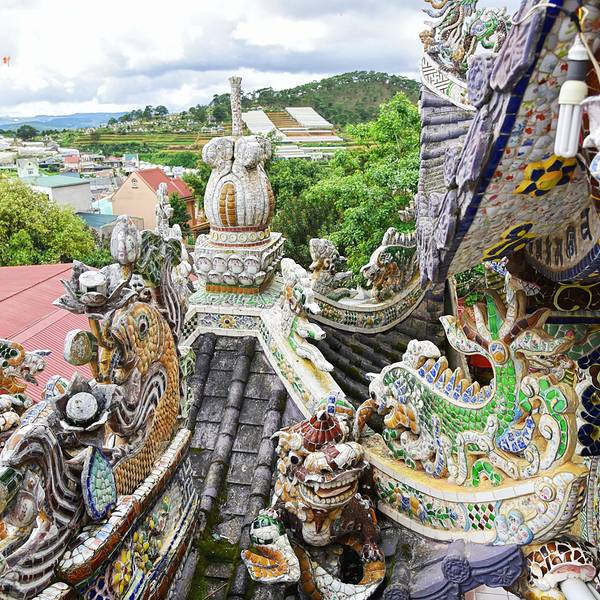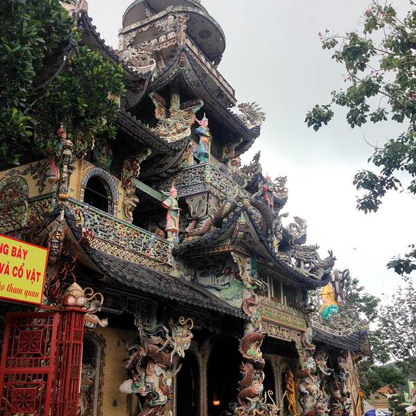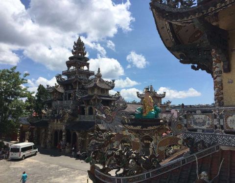 灵福寺(Linh Phuoc Pagoda)寺高约七层,被难以计数的龙造型装饰得鲜艳夺目...从大叻旧火车站(Da Lat Train Station)乘坐一段复古的列车,铁路连接着大叻到 Trai Mat(一个小镇)之间的交通,终点就在灵福寺。
