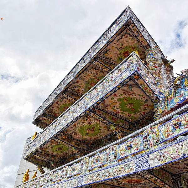 灵福寺位于火车终点站Trai Mat镇,建筑外观均由彩陶与碎瓷片镶嵌拼贴而成,就像是一件巨大的...灵福寺位于火车终点站Trai Mat镇,建筑外观均由彩陶与碎瓷片镶嵌拼贴而成,就像是一件巨大的镂空雕刻工艺品,其规模令人叹为观止~ 灵福寺是由当地华人出资,于1949年至1952年间建造完成的,并在1990年进行了一次...灵福寺位于火车终点站Trai Mat镇,建筑外观均由彩陶与碎瓷片镶嵌拼贴而成,就像是一件巨大的镂空雕刻工艺品,其规模令人叹为观止~ 灵福寺是由当地华人出资,于1949年至1952年间建造完成的,并在1990年进行了一次大规模修复,各类图腾花纹精致且内容丰富,远观壮观炫目,近看形象生动,艺术水准可谓是登峰造极,还有两座巨型的观音立像~ 灵福寺由多个独立建筑组成,从寺庙的规模、制做精度、外观可视性都是我们曾经见过的寺庙无可比拟的。 在”灵福寺“,正值中雨下的较紧,来这里的人也不多。雨中即景另有一情趣,没有大风、没有曝晒、没有拥挤,只有凉爽的感觉和放松的氛围。 古老的佛亭被车辆包围着,的确有损整体景区形象,看来对于文物的保护,还要重新规划。 展开