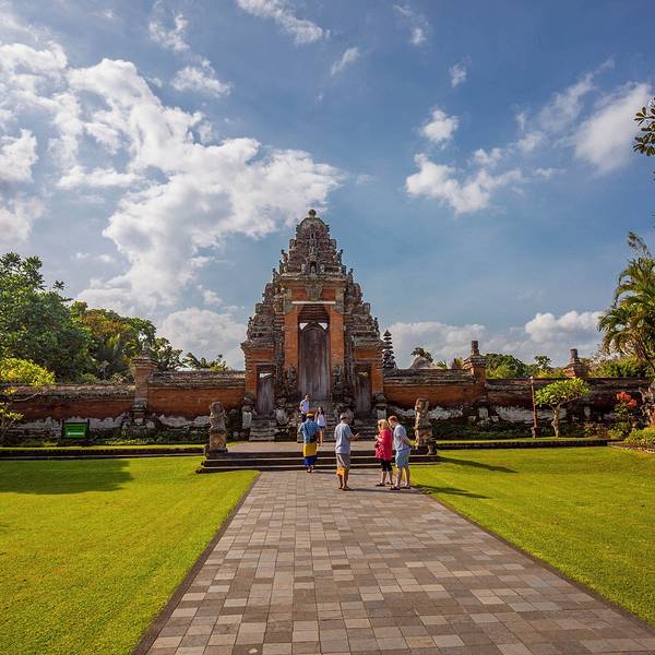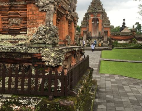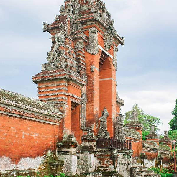 [母神庙是巴厘岛一处皇家园林寺院,建造于1634年,是岛内第二大寺庙,为孟格威王国时代的皇家祭坛[母神庙是巴厘岛一处皇家园林寺院,建造于1634年,是岛内第二大寺庙,为孟格威王国时代的皇家祭坛。 进门是大片的草坪,内庭是各种祭祀神坛,寺庙内有诸多祭塔和29座祖先的神位,还有美丽的护城河和花园。母神庙...[母神庙是巴厘岛一处皇家园林寺院,建造于1634年,是岛内第二大寺庙,为孟格威王国时代的皇家祭坛。 进门是大片的草坪,内庭是各种祭祀神坛,寺庙内有诸多祭塔和29座祖先的神位,还有美丽的护城河和花园。母神庙的庙门用红砖修砌而成,顶部用石砖装饰成山形层层递增,每层都雕刻着数个小神像,灰迹斑斑的石砖与雕塑显示着它的百年沧桑。 展开