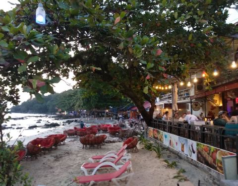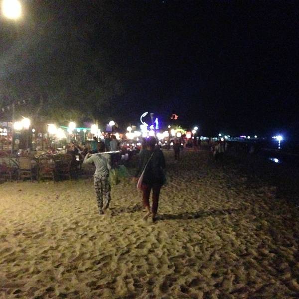 这就是我们在珍宝沙滩享受美食的小店,都是露天在躺椅上休息,吃饭、喝酒、聊天,很多人在放孔明灯。