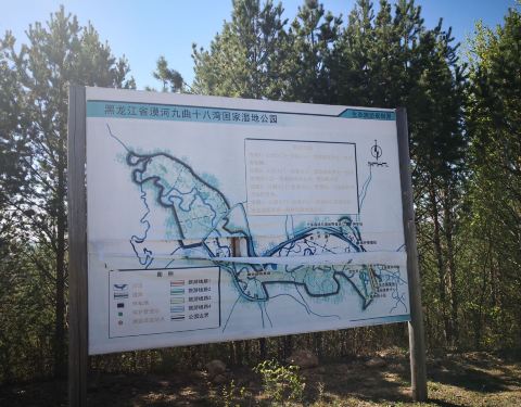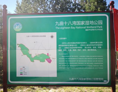 这个团一共四个客人,来自三个地方,司机兼导游。九曲十八湾观景台站观景台上眺望额木尔河,茂密的树林挡住了视线,弯弯曲曲的河道看的不明显九曲十八湾国家湿地公园入口,...提前报的三日游旅游团,早晨司机来接。