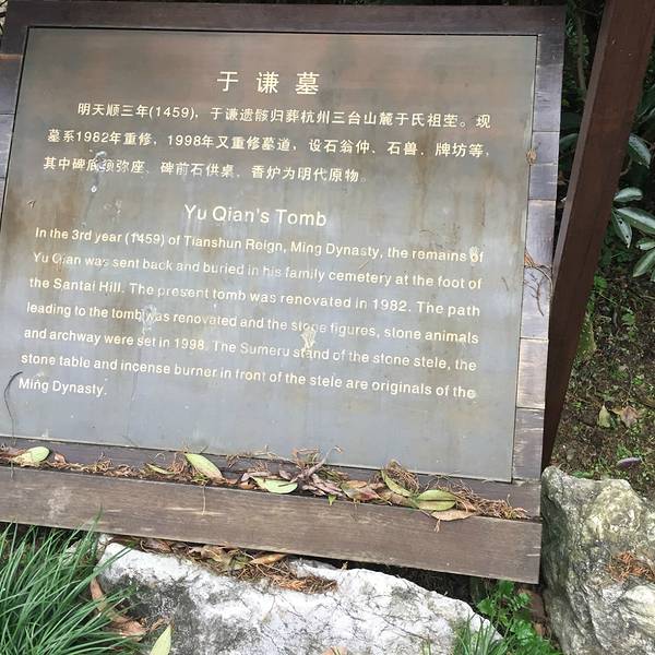 于谦祠,位于杭州的三台山,但目前还处于闭馆阶段,后面的墓园确是可以参观的于谦祠,位于杭州的三台山,但目前还处于闭馆阶段,后面的墓园确是可以参观的。于谦墓,建有神道和石像生,还有一个单冢墓穴,平时参观的人较少,环境虽然冷清,但也不乏让人尊敬。毕竟,在北京保卫战里,于谦大...于谦祠,位于杭州的三台山,但目前还处于闭馆阶段,后面的墓园确是可以参观的。于谦墓,建有神道和石像生,还有一个单冢墓穴,平时参观的人较少,环境虽然冷清,但也不乏让人尊敬。毕竟,在北京保卫战里,于谦大人也算是个民族英雄了,在杭州,和岳飞同是西湖三杰之一。 展开