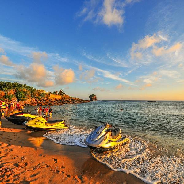 2、从高雄机场出发,搭乘高雄、屏东客运至【恒春站】,转搭垦丁列车或(橘线,仅假日与寒暑假行驶)至【垦丁欧克山庄】(对面即是船帆石)。
