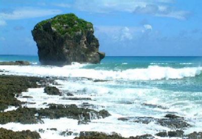 伫立在海岸边,形如船帆的巨大珊瑚礁岩,附件还有珍稀的热带海洋林。