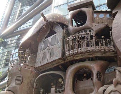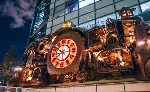 这是一个不错的小广场,当第一次看到这个时钟,我立刻想到了哈尔的移动城堡,并且确实这是宫崎骏和吉...这是一个不错的小广场,当第一次看到这个时钟,我立刻想到了哈尔的移动城堡,并且确实这是宫崎骏和吉卜力工作室共同设计的。这是一个非凡的构造,看起来很有趣。如果在附近,一定要来看一看。