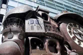 前往汐留地铁站时突然抬头发现一造型独特的大钟,配合钟前的告示牌,上网一查居然是日本电视台的由宫崎骏设计的卡通大钟,以宫崎骏成名漫画哈尔的移动城堡为设计原型修建的,特意到旁边大楼内歇了几十分钟,于整点前2分45秒看大钟的演艺演出。