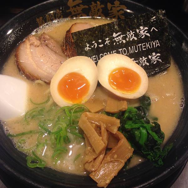 在新宿一直逛到了晚上,然后出发去池袋吃晚餐,仅仅是为了一碗拉面。 朋友推荐,说她每次来东京,都必须去吃这家店的拉面,因为真的很好吃!这就是无敌家! 无敌家是超级火爆的拉面馆,据说只有晚上10点后才有可能不需要排队,我们硬是在冷风中排了近一个小时!拉面很有嚼劲,汤底也非常浓郁,是值得一去的拉面馆哦!