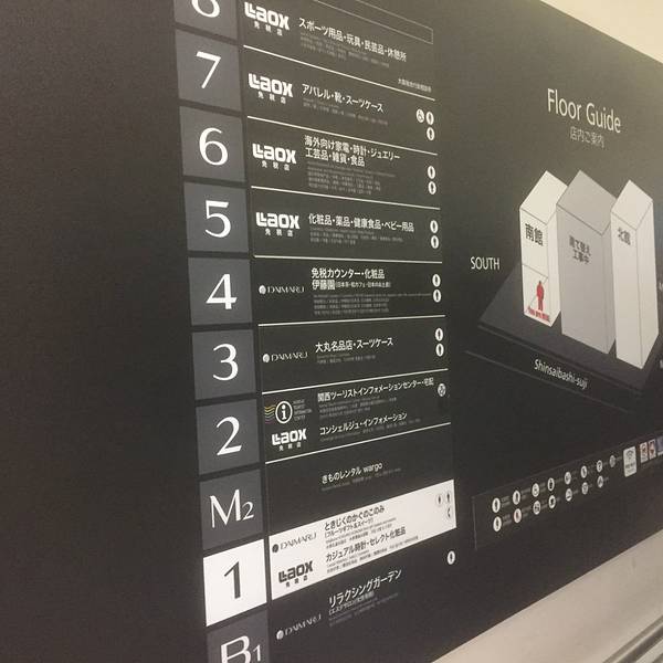 大丸心斋桥百货店的建筑由建筑师“Vories”所设计,新歌德式的外观很吸引人,不只是外表,里面数量惊人的店铺更让你惊叹。分为本馆、南馆和北馆,在附近还有约20家路面店铺。不仅能买到世界名牌,价廉物美的用品也不少。 本馆地下2层至地上8层,其中,地下两层主要卖日式糕点和面包,1楼有化妆品专柜,2-6层可以挑选服装、杂货箱包等商品,7楼卖家具,最顶层是餐厅,可以享用精致的料理。 南馆地下1层至地上8层,有休闲花园、退税柜台、日本杰作店等。 北馆地下2层至地上14层,除了可以买到服装、箱包、运动类产品、鞋子、化妆品,这里还有婚庆沙龙、剧场、烹饪学校等,值得一提的是,顶层是一个楼顶庭院,休息和放松的好去处。