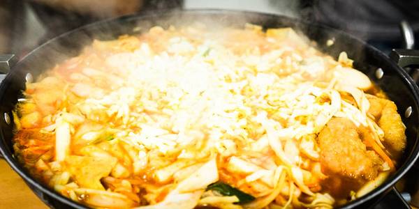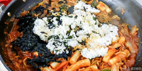炒年糕是韩国最常见的街头小吃,深受韩国人的喜爱,这家店跟街头炒年糕小吃不一样。将年糕、拉面、鱼饼、蔬菜、饺子等食材加入特制辣椒酱放入锅里炖煮,做成特制的年糕锅。最后用留下的汤汁加入米饭和紫菜翻炒,每一粒米饭都吸饱了汤汁,非常美味。
