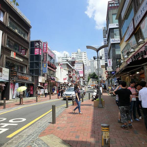 梨大购物街顾名思义就是梨花女子大学周边的购物街区。梨花女子大学位于大岘洞,是首尔历史最悠久的大学之一。学校周围分布着很多有特色的商铺,化妆品店、咖啡馆等,不过我觉得最多的是眼镜店。附近会有很多时尚...梨大购物街顾名思义就是梨花女子大学周边的购物街区。梨花女子大学位于大岘洞,是首尔历史最悠久的大学之一。学校周围分布着很多有特色的商铺,化妆品店、咖啡馆等,不过我觉得最多的是眼镜店。附近会有很多时尚的男女大学生出入。梨花大学的附近也有一个圆形广场,逛街累了的时候可以在此休息,这里偶尔会有一些小型的表演。传说中摸到这面花墙会带来好运。高跟鞋标志也是这里的一大地标性建筑。