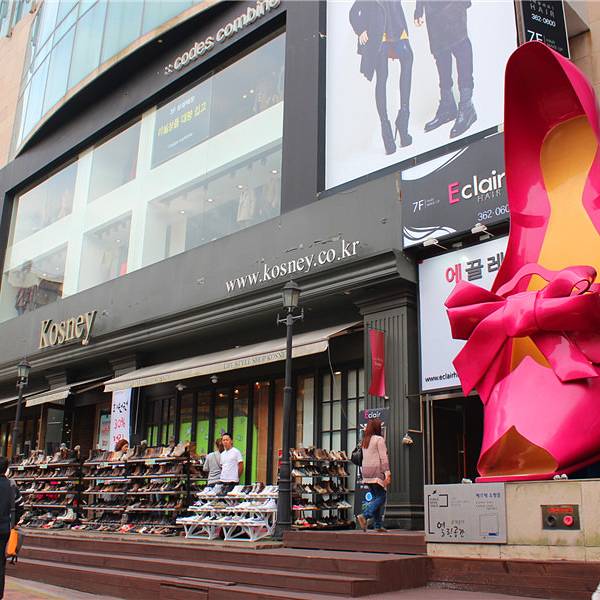 梨大时尚购物街泛指 “梨花女子大学”附近地区,粉色高跟鞋是这条街的标志。这里聚集了很多专门面向年轻女…