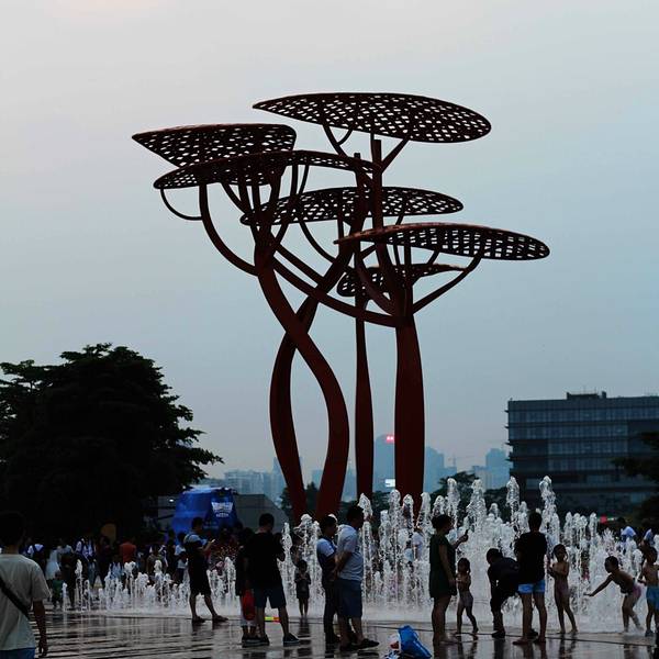 周末人多热闹,水秀表演不错