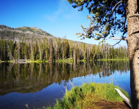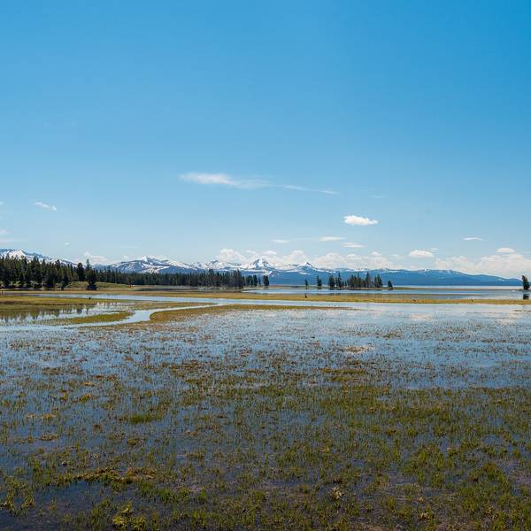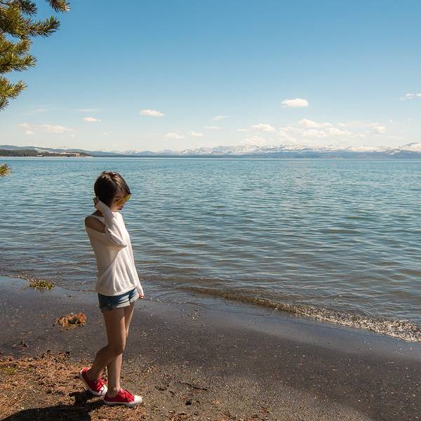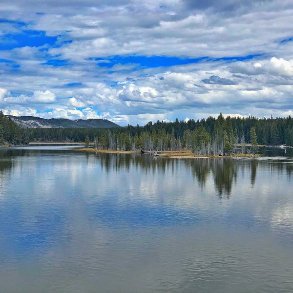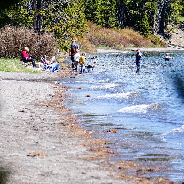 Tips:钓鱼桥两头都有停车的地方,但个人觉得东边风景比较好看。旅行中的最美妙的地方往往存在于不经意之间发现的美景,有一种“这个地方只有我们知道”的小窃喜。Bridge Bay带给我们的感觉就是如此,这里已经不再是黄石的主要景点,之前也从未听人提过。在这里,一切的喧嚣,躁动都早已消失,身处其中,内心静谧,明亮。不远处,有人在钓鱼,方式很特别,半截身子都浸在水里,感觉直接下去捞可能会比较方便。
