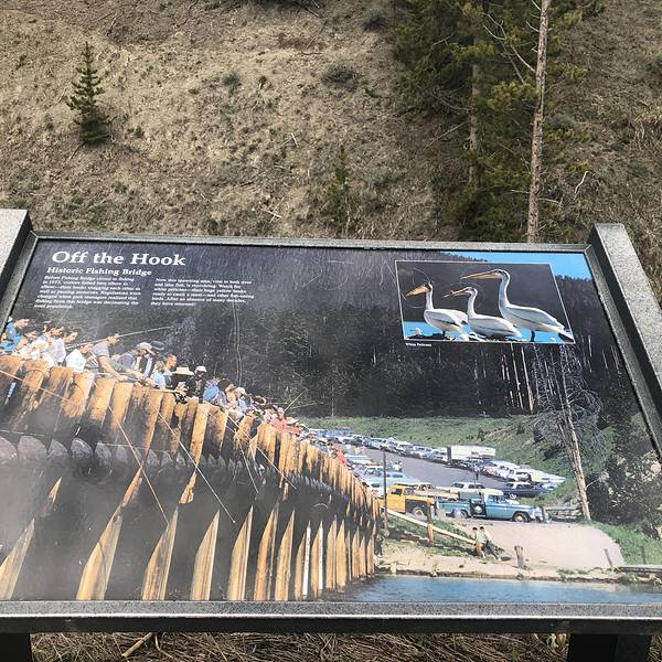 位于黄石湖的出口,曾经是一个非常受欢迎的钓鱼地点,但是后来公园为了保护黄石国家公园的生态就禁止钓鱼了。每年6、7月可以在这里观看野生鳟鱼逆流产卵。在钓鱼桥有一个游客中心,以鸟类的展览...黄石湖边的钓鱼桥