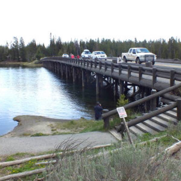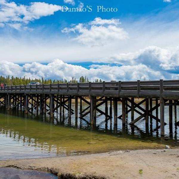 位于黄石湖的出口,曾经是一个非常受欢迎的钓鱼地点,但是后来公园为了保护黄石国家公园的生态就禁止钓鱼了黄石湖边的钓鱼桥