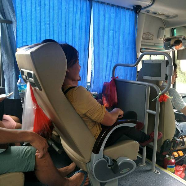 遂一人又背上背包做大巴,带着向往穿越马路十八弯,用时四个多小时,还穿过了几个没有灯的隧道,终到勐腊,期间一阿姨在安安静静车上不停地打电话,真想反手一个巴掌抡过去,就不能考虑考虑车上其他人小点儿声,带了扩音器一样真的很气人。