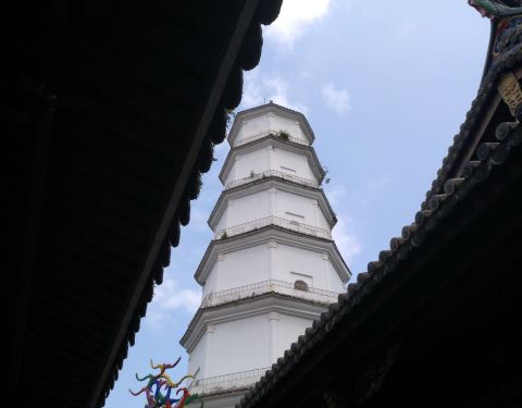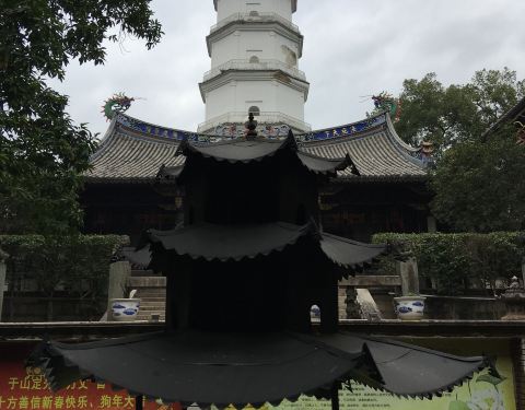 白塔在定光寺内,定光寺可免费参观,这个白塔又叫定光多宝塔白塔在定光寺内,定光寺可免费参观,这个白塔又叫定光多宝塔。塔高41米,但被雷火烧毁过一次,是在原有基础上修复的,这个塔始建于唐朝哦!