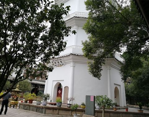 白塔为福州 “三山二塔” 的二塔之一,矗立在于山西麓,也就是定光寺内,与乌山的乌塔遥相呼应,成...白塔为福州 “三山二塔” 的二塔之一,矗立在于山西麓,也就是定光寺内,与乌山的乌塔遥相呼应,成为福州的地标建筑。 白塔,亦称定光塔,原名报恩定光多宝塔,是闽王王审知为其父母荐福,于唐天祐元年(...白塔为福州 “三山二塔” 的二塔之一,矗立在于山西麓,也就是定光寺内,与乌山的乌塔遥相呼应,成为福州的地标建筑。 白塔,亦称定光塔,原名报恩定光多宝塔,是闽王王审知为其父母荐福,于唐天祐元年(904年)建造的。传说在辟基时,发现一颗光芒四射的宝珠,所以取名定光塔。初建时塔内砌砖轴,外环木构楼阁,是一座高 66.7 米的七层砖心木塔。每层的斗栱、云楣、栋梁、栏杆都经过精雕细刻,塔壁和门扉还绘有佛像。明嘉靖十三年(1534 年),塔被雷火焚毁。嘉靖二十七年(1548 年)重建时,改为七层八角砖塔,高 41 米。因外面涂上白灰层,故称白塔。 晚上的白塔别有异彩,我们这次没在晚上去观赏,有点小遗憾哦! 展开