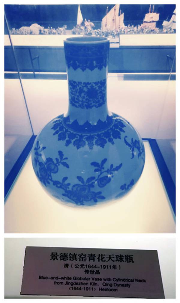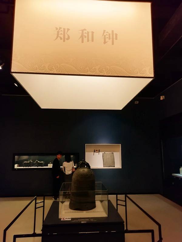 腹上下各饰二圈凸弦纹,腹中印暗花衬莲纹如来立像 漳窑景德镇窑青花天球瓶 清 (公元1644-1911年)郑和铜钟,是郑和等为祈保西洋之行往返平安,于明宣德六年(1431年)所铸造。