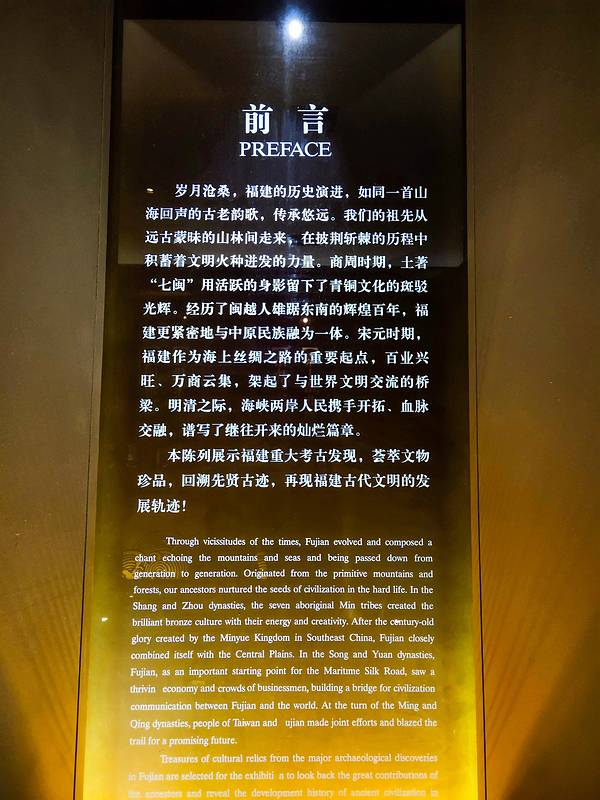 共3层,注意从大门入口进去是2楼!2楼设有“福建古代文明之光”、“闽迹寻踪——福建考古成就展”、还有“闽海蔚蓝”;