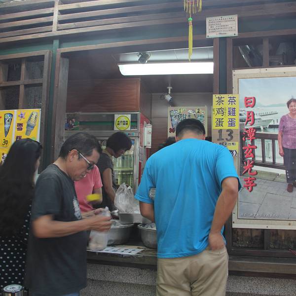 阿婆茶叶蛋在日月潭玄光寺码头通往玄光寺的阶梯上,在凉亭里有一个阿嬷古早味香菇茶叶蛋,卖茶叶蛋的阿嬷在这里卖茶叶蛋卖了50年,从少女茶叶蛋西施到年长的阿婆茶叶蛋,历久不衰,可见这个茶叶蛋有多独特了!