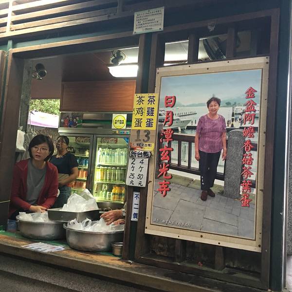 朱导和游艇船长,特意就向大家隆重推荐了玄光寺旁边的“阿婆茶叶蛋”。是游览日月潭“到此一吃”的必选品。今年82岁的邹金盆阿婆,从二十多岁开始在日月潭玄光寺码头旁卖茶叶蛋,至今已近50多年了。她还上过中央...朱导和游艇船长,特意就向大家隆重推荐了玄光寺旁边的“阿婆茶叶蛋”。是游览日月潭“到此一吃”的必选品。今年82岁的邹金盆阿婆,从二十多岁开始在日月潭玄光寺码头旁卖茶叶蛋,至今已近50多年了。她还上过中央电视台的节目,更被誉为“全台湾最好吃的日月潭茶叶蛋”。