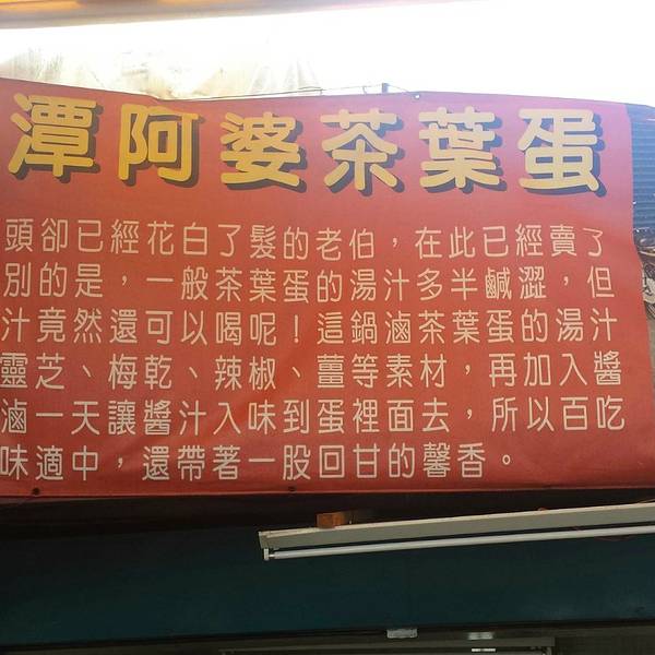上岸之后,岸边有这边比较有名的阿婆茶叶蛋……对,就是那个我们“吃不起”的茶叶蛋哈哈……15新台币一只,尝了尝,味道确实不错,跟大陆的有些区别,没有以前吃的那种那么咸,有些说不出缘由的香味。后来导游介...上岸之后,岸边有这边比较有名的阿婆茶叶蛋……对,就是那个我们“吃不起”的茶叶蛋哈哈……15新台币一只,尝了尝,味道确实不错,跟大陆的有些区别,没有以前吃的那种那么咸,有些说不出缘由的香味。后来导游介绍,这里的茶叶蛋,配料堪称豪华,有香菇、野生灵芝、阿萨姆红茶……