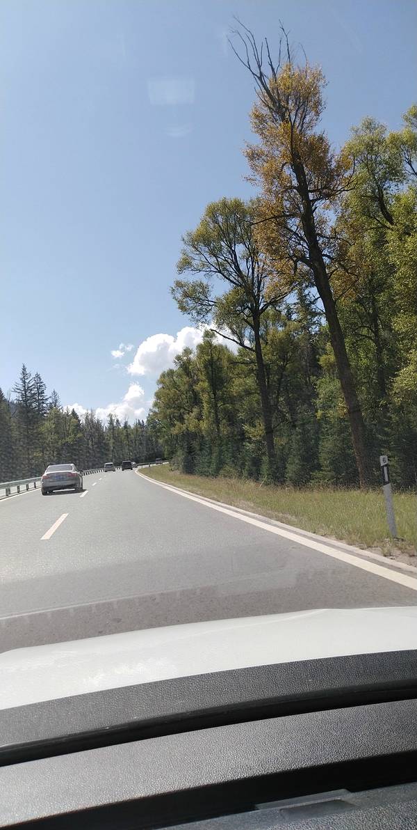 我想下去水里,结果一车的人都反对说为了我安全,说话的多是那些怕水的人,所以只能留几张照过过瘾了再美也得走啊……天境祁连,一起来享受吧……经过黑河大峡谷,那个很有名的叫什么树我忘了。