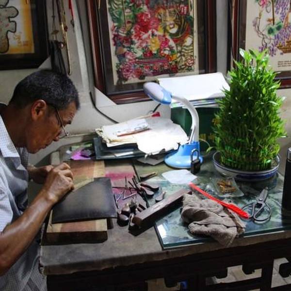 2、木版年画:袁家村的木版年画基本采用坚硬、纶理细腻的梨木、枣木板雕刻后,刷上水墨,印在容易吸水的宣纸上,也用水性的彩色颜料,分多版多次印成彩色年画,具有浓郁的地方特色。