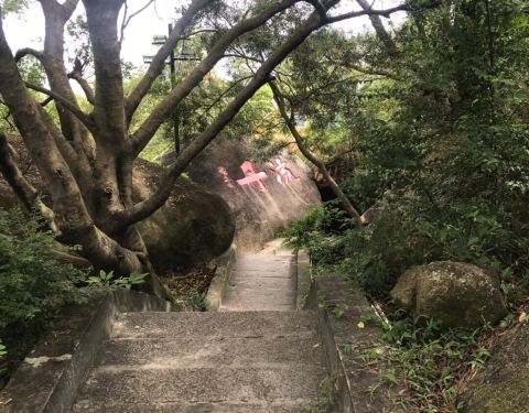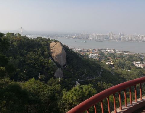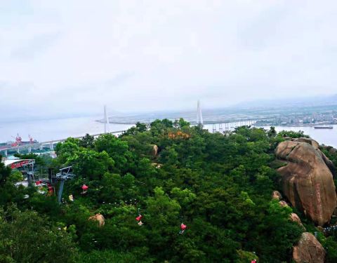 坐公交从观海长廊到了礐石风景区,走过一条长长还算平坦的路,就到了礐石塔山风景区,由于下雨,滑道没有开放,不过上下山的索道还是可以乘坐的,缆车缓缓上升,到了山上,还需略略自己爬些台阶,登上塔山上风景还是蛮好的