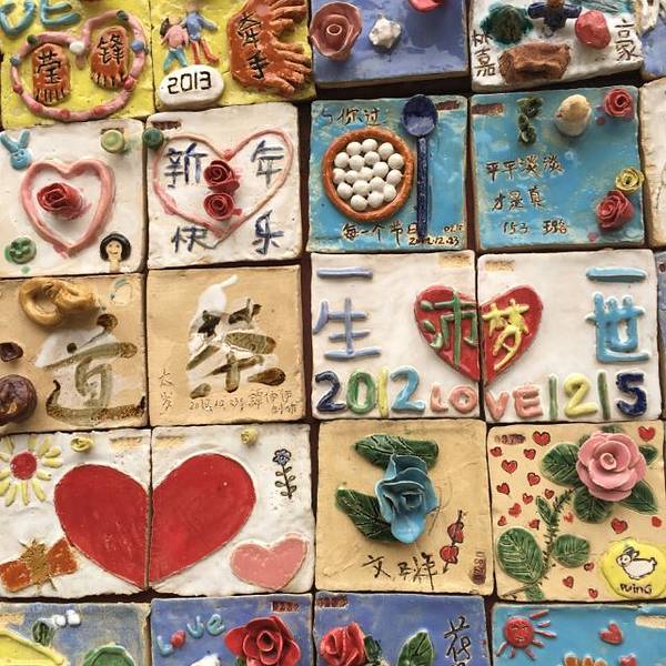 2⃣️百万梦想墙:算是南风古灶的最大创意——“梦想砖”,用图画、文字、手印等各种你可以想到的方式,将自己的梦想放到了一块陶板上,烧出来,进行编号,砌成“百万梦想墙”,从玩陶厅出发,绵延到整个石湾公园几十公里,成为中国新长城。