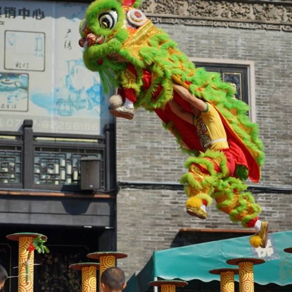 舞狮会舞出一些或优美或滑稽风趣的招式,供大家娱乐,同时也会表演一些高难度的动作,作为观众在旁边看着确实也纠了一把汗!