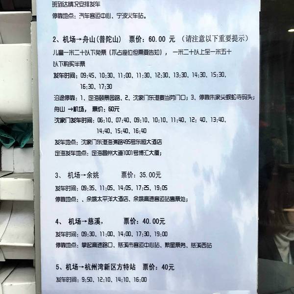 三、机场→舟山(普陀山) 票价:60.00 元 (请注意以下重要提示)