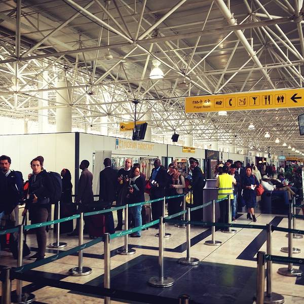 机场视频在播放埃博拉的防护宣传片。二楼和一楼间的转角,贴着全世界各地的风景画。机场有专门的中文咨询台,这里是非洲的中转站,国内无论去非洲各个国家打工、出差、旅游都会在这里转机,所以中国人占了将近三...机场视频在播放埃博拉的防护宣传片。二楼和一楼间的转角,贴着全世界各地的风景画。机场有专门的中文咨询台,这里是非洲的中转站,国内无论去非洲各个国家打工、出差、旅游都会在这里转机,所以中国人占了将近三分之一的客流量。机场有躺椅,如果长时间候机的话,可以有地方睡觉啦。