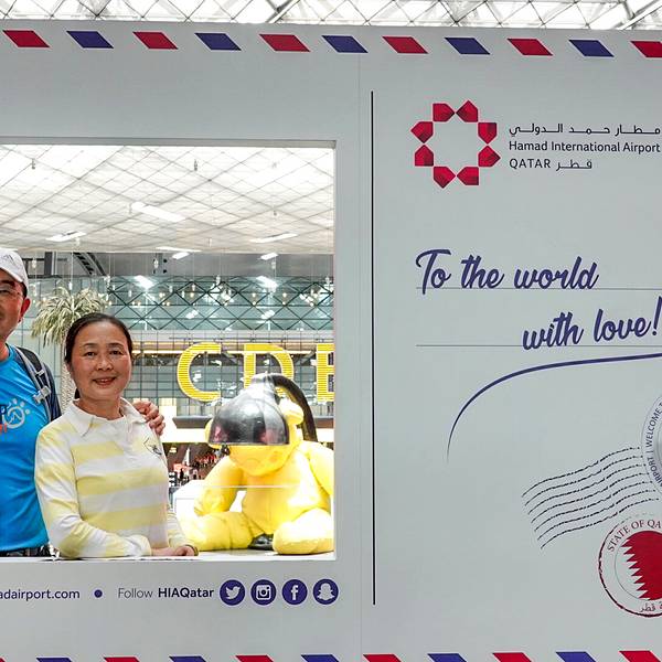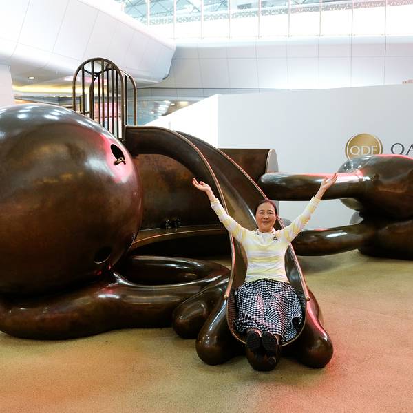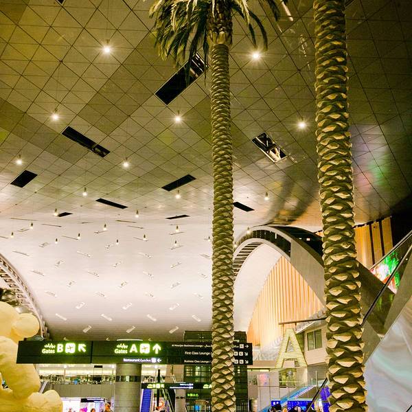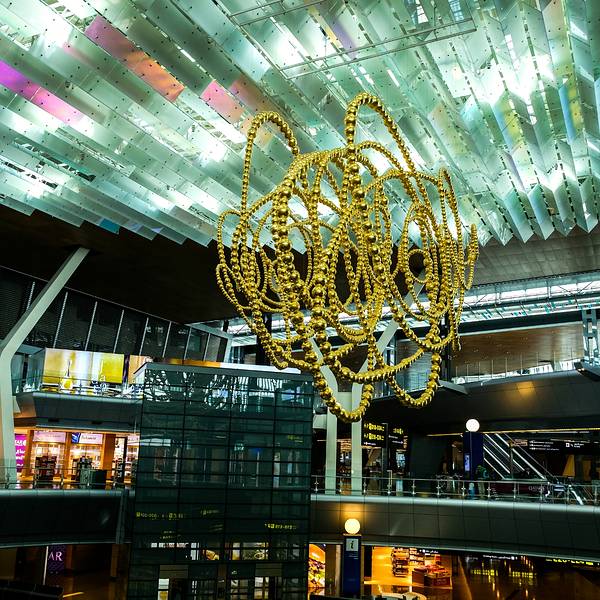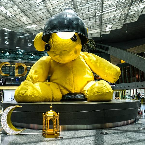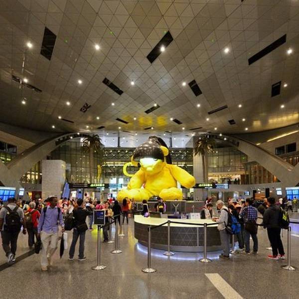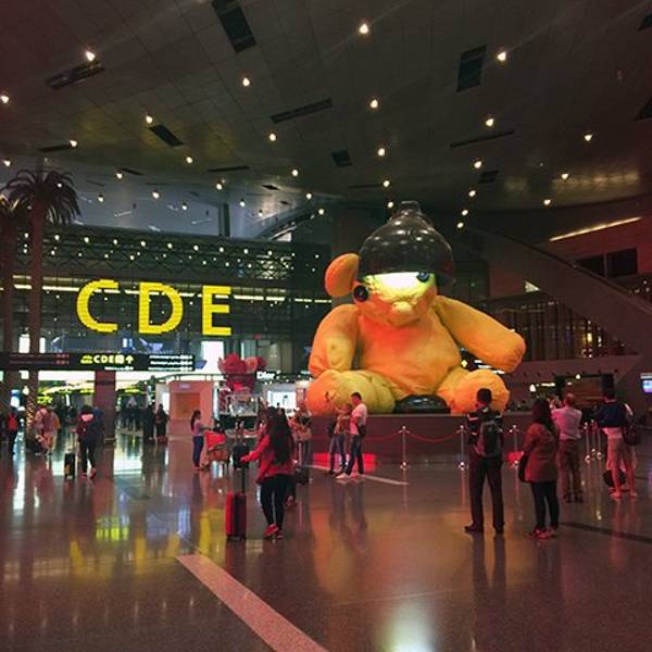 多哈机场标志性塑像-大黄熊。多哈机场很大,感觉是富丽堂皇,空调很足。多哈机场留影。多哈机场。多哈机场