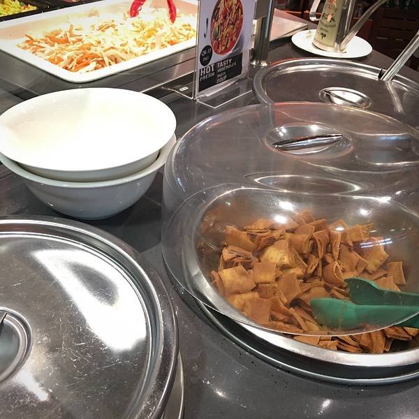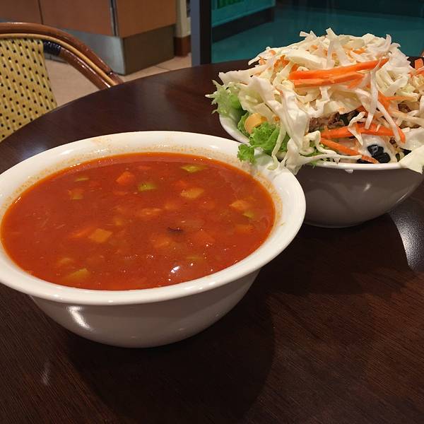从北京先飞多哈,在机场呆了14个小时再飞雅典,多哈机场里吃了一顿饭,其中沙拉+汤的套餐性价比超级高……就在下图这个餐厅……自助沙拉一碗+一碗汤,共43里亚尔(多哈属于卡塔尔,货币是里亚尔,大概是1里亚尔=1.89人民币),合人民币81元左右。沙拉碗和汤碗一样大,汤有两种,一种是奶油蘑菇汤,一种是意大利蔬菜汤,还有油炸的小面点。沙拉里肉类主要是金枪鱼和火鸡肉,其它的就是蔬菜,讲真,如果拿一碗全是肉的,三个男生也未必吃的完……碗有多大,你们自己看吧……