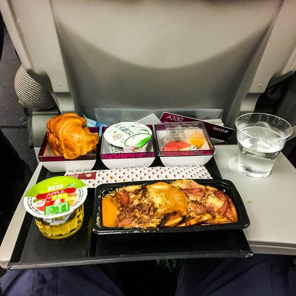 这两趟飞行时间比较长,好在A380卡塔尔飞机还比较宽敞,双层,经济舱肯定在一层,一排10座,这样的长途飞行还是要选择舒适的航班。值得一提的是卡塔尔餐食很美味,这两趟的4餐都很丰富,一次性不锈钢餐具,每个椅...这两趟飞行时间比较长,好在A380卡塔尔飞机还比较宽敞,双层,经济舱肯定在一层,一排10座,这样的长途飞行还是要选择舒适的航班。值得一提的是卡塔尔餐食很美味,这两趟的4餐都很丰富,一次性不锈钢餐具,每个椅背都有usb接口方便手机充电,空中服务也很赞。有空中wifi,网速还不错,第一次空中刷微博发微信,不过只能免费使用30分钟,超出的时间就有不同的收费制度,而且还不便宜。