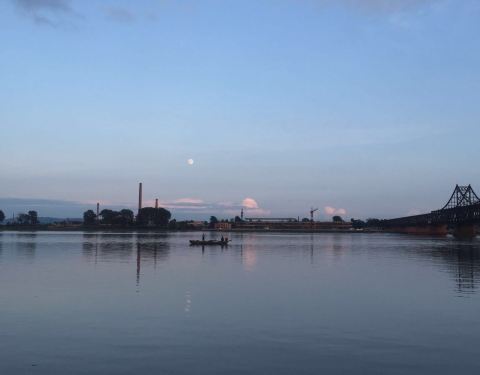 天蒙蒙亮无锡出发的,到丹东已是日落时分。