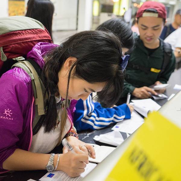 这时你的背包里最好准备一支笔,这里没提供笔的,要是你等别人写完再借,这里早就空空无人。
