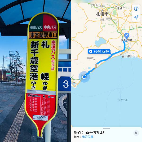 巴士:到【札幌中心地区】约80分钟,费用1000円(折合人民币52元左右)。上车后,车内有个屏幕,显示所有接下来站点的票价,到站下车就拿相应的钱投币即可。