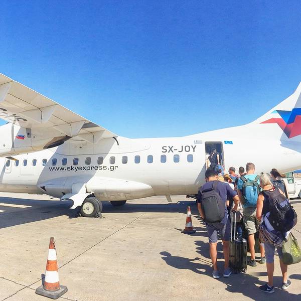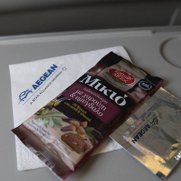 短暂的两天雅典之旅结束了,搭乘爱琴海航空前往米克诺斯岛。乘坐爱琴海航空需要先在自助机check in,打印登机牌和行李标签。有英文界面,不用担心看不懂。整个飞行时间只有短短的45分钟,机上只供应一块饼干和一...