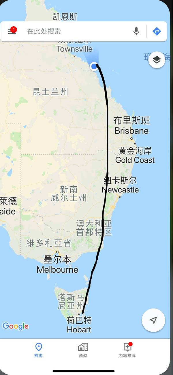 回程航班参考: 维珍澳州 VA705 霍巴特13:05-14:45布里斯班 B738 飞行时间2小时40分钟,两地夏令时有1个小时时差,非夏令时则无时差。