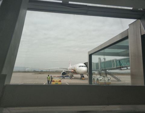 嘉峪关机场,名字是这个名字吧,离嘉峪关和酒泉市区差不多一般远近,算是甘肃第二大机场了。有廊桥,不过没有联络道,起飞降落都得到跑道西头自滑掉头。